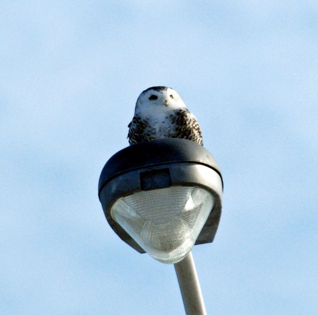 Hoping against hope we headed back to the Appleton Side Road fields for one last ditch attempt at finding a Snowy but with no luck. Discouraged we pulled into the old feed store lot at Hwy 7 and Ashton Side Road, parked and settled down for tea and biscotti. A flurry of emails from Arnie Simpson alerted us to Snowy Owls on the south side of Hwy 7 less than a kilometer away. After three tries up and down Hwy 7, I started pulling away from the shoulder to go home when Zaza spotted one flying and it landing atop a light standard close by. A beautiful first year female by colouration. Arnie saw three Snowy in all. Zaza and I returned home to end a successful first day.