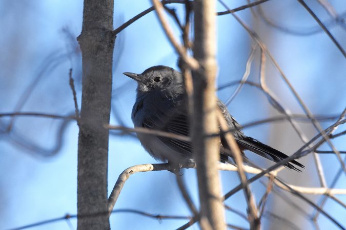 Gray Catbird was visibly shivering, photo Marc Gawn