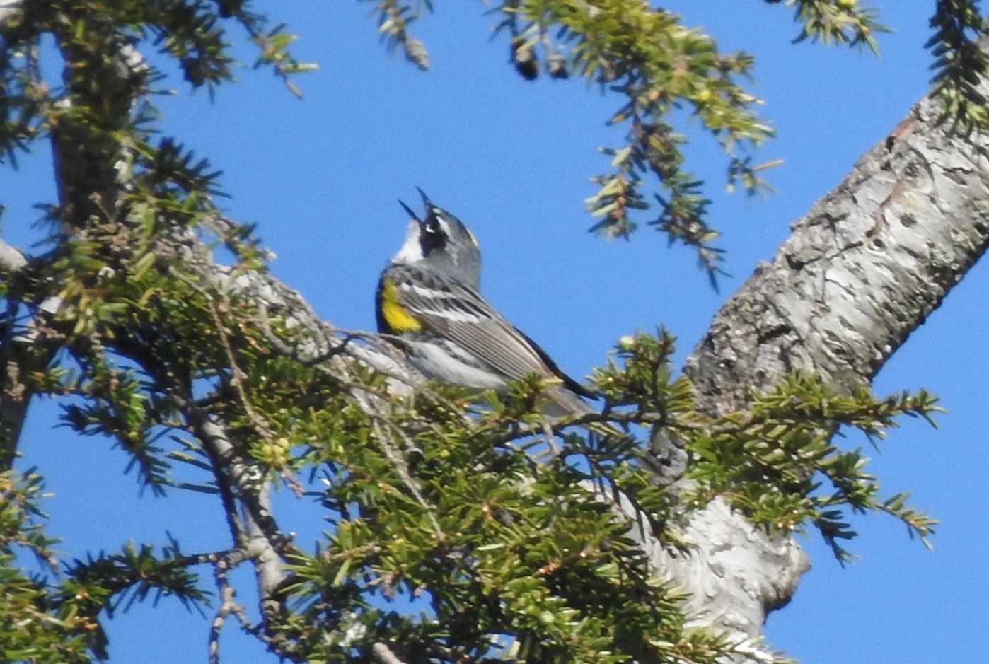 A total of 14 individuals participated in a walk at 561 Wolf Grove Road. It was a beautiful, sunny morning. Blackflies were moderately numerous, unfortunately. Also, the tree leaves had really popped in the past week, making viewing of warblers high in the tree tops rather problematic.